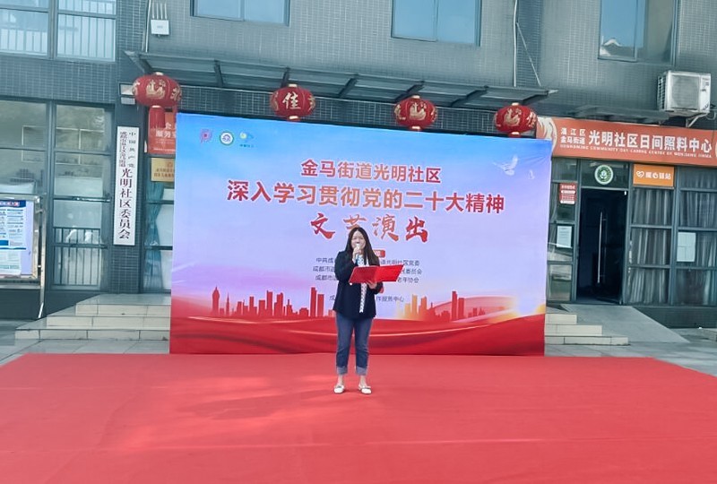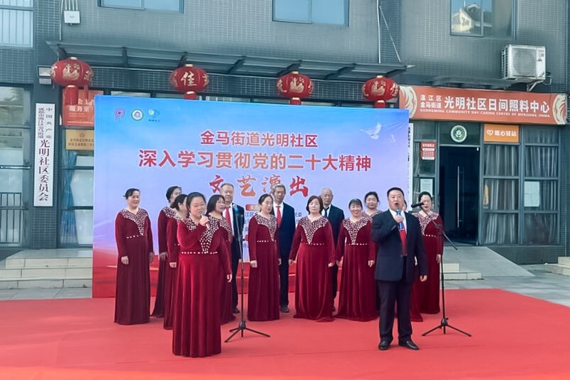 为深入学习宣传贯彻党的二十大精神,增强党员群众向心力和凝聚力,4月27日,金马街道光明社区联合明诚社工开展“深入学习贯彻党的二十大精神”文艺演出活动。居民们利用喜闻乐见的文艺节目将“大主题”转化为“小切口”,把“文件语”变成“家常话”,积极推动党的二十大精神深入基层、深入人心。