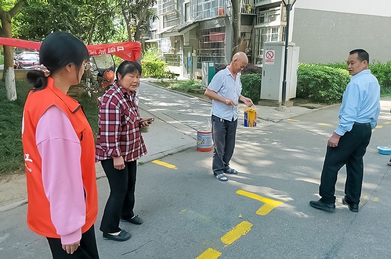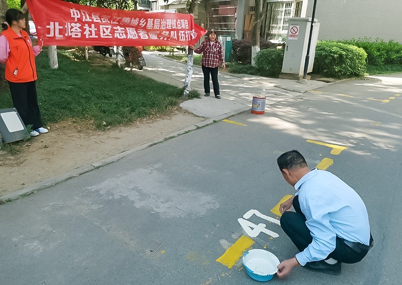 四川省绵阳市中江县凯江镇北塔社区凯瑞康城一期小区建造时间较早,小区内基础设施逐渐陈旧,社工在前期调研时发现,小区内的停车位规划较为混乱,停车线也磨损严重。4月27日,社工与凯瑞康城一期小区志愿者服务团队一同为重新规划后的240个车位重新画线,营造更加井然有序的社区环境。