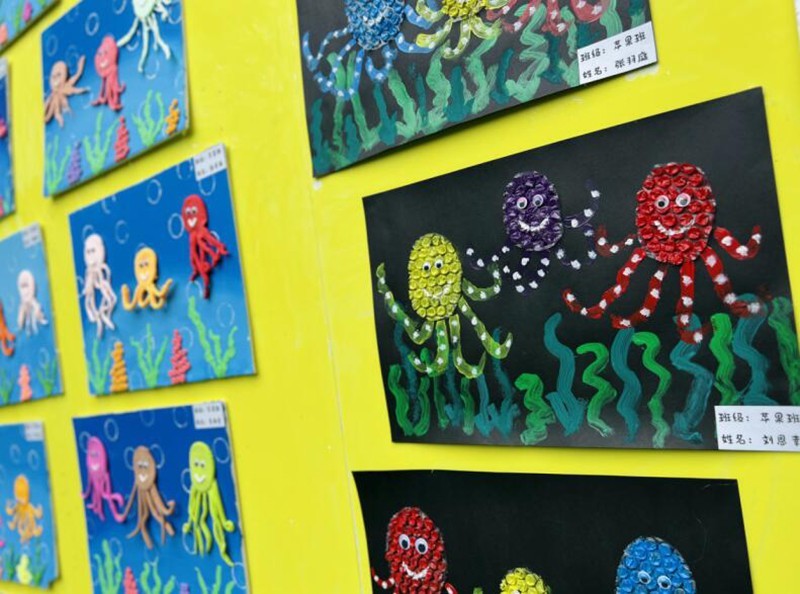 初入乐园,映入眼帘的是孩子们的各类绘画作品,以及孩子们和老师一起完成的主题展板。孩子的喜欢简单纯粹,或喜欢不同颜色或喜欢各种事物,让我们从孩子的视角出发,一起用天真无邪的眼睛去发现生活中的美好。