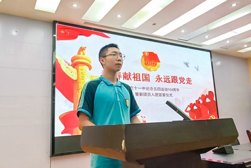 为团结引领全校广大团员青年永远跟党走、奋进新征程。5月4日上午,南充市第十一中学校举行2023年新团员入团仪式。本次活动由校团委书记李波主持,校党委副书记郑昕、团委副书记李敏、郑小龙以及一百余名新团员代表参加。