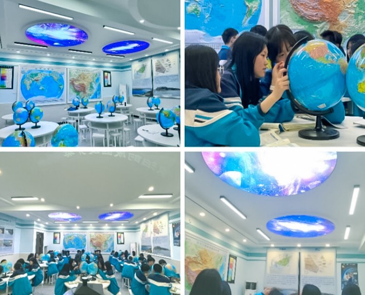 数字化地理教室集现代地理教育技术最新成果之大成,以“数字化”为主导,配合丰富的地理挂图、探究实验箱和仪器设备。天文地理展示设备把虚像投影到成像空间,通过精调三个面的成像融合形成“实像”,给人一种“身临其境”的真实感觉。