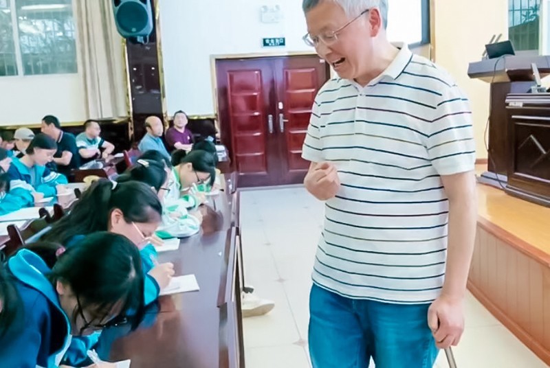 张继海老师同时借用例题与该校学生进行了师生互动,亲自指导该校高三学子现场解题。陈潮填教授精彩详尽的讲演在很大程度上鼓励了在场的莘莘学子,激起了他们对于数学的热情。