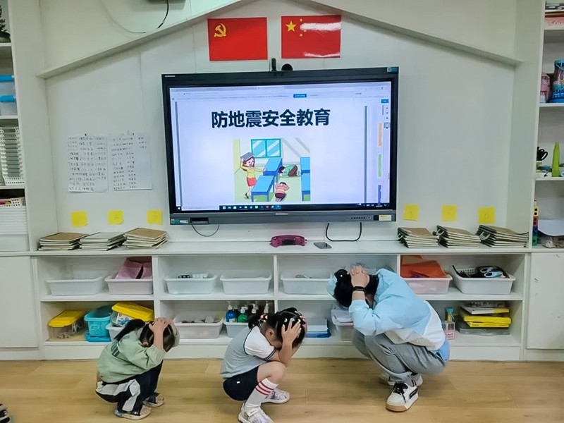 演练开始前,各班老师进行了防震安全教育活动,通过视频、图片相结合的方式,根据幼儿的年龄特点,生动形象为小朋友讲解防震知识,让幼儿了解为什么会发生地震;发生地震时,如何进行躲避;躲避时,有哪些地方是安全区域可以躲避,哪些区域是危险区域不能躲避;什么时候可以进行安全逃生等。