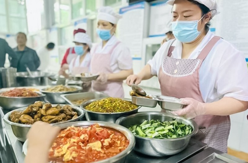 午餐时间到了,在老师的组织下,大家迫不及待地排好队走进了哥哥姐姐们的食堂,原来小学的食堂这么大呀,而且用餐工具和幼儿园的用餐工具是不一样的,食堂的叔叔阿姨把饭菜都整整齐齐地放在了每个餐盘的格子里,看起来好丰富好美味啊!