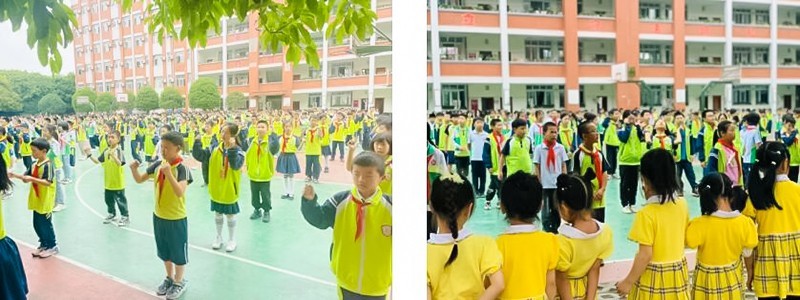 哥哥姐姐们穿着统一的校服,迈着整齐的步伐走向操场,伴随着动感的音乐,做起了欢快的课间操。哥哥姐姐们动作有力到位、整齐划一,是我们学习的榜样!