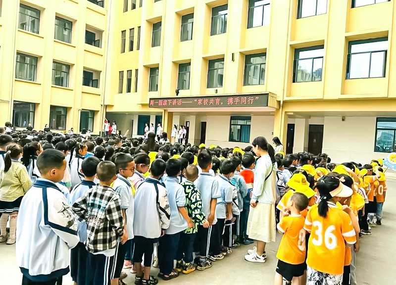 孩子们迎着朝阳,踏着曙光,怀着兴奋和喜悦的心情来到了余家河学校。听着雄壮的《义勇军进行曲》,孩子们与哥哥姐姐一起参与了庄严肃穆的升旗仪式。