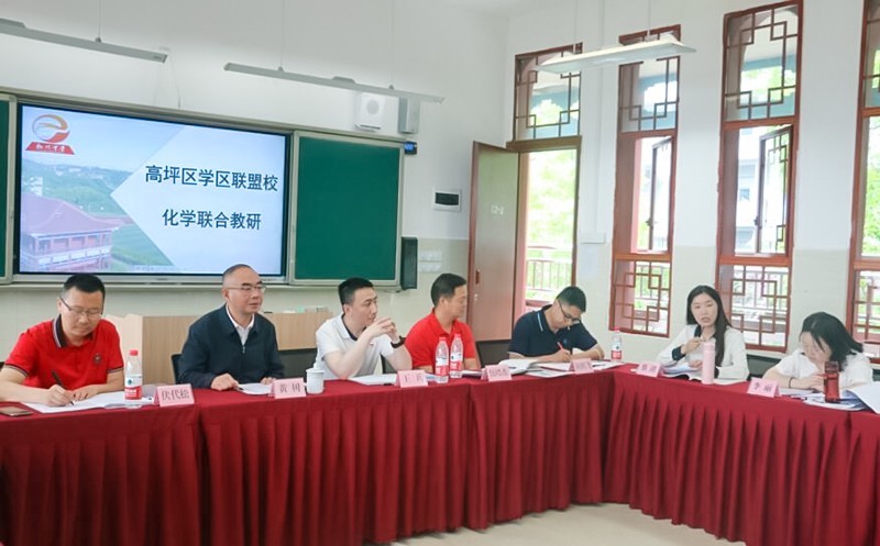 为推进区域优质教育均衡协调发展,加强“三新”背景下高中课堂教学研究,构建校际深度合作发展新格局,提高我区高中教师教育、教学、教研及专业发展水平,提升高中教育质量,5月19日上午,高坪区高中学区联盟校高一化学联合教研活动在我校举行。高坪区高中学区联盟校化学备课组组长、全体高一年级化学教师参会。本次活动由化学教研组组长杨丽玲主持。