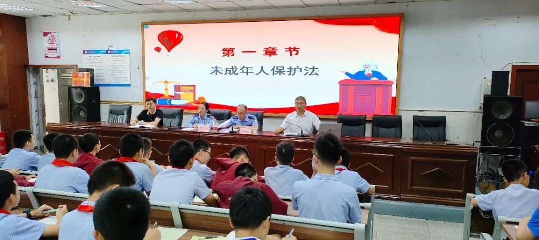 雷教导员从《未成年人保护法》《预防未成年人犯罪法》等方面对师生进行法律知识讲解、同时用通俗易懂的语言针对家庭暴力与校园暴力进行讲解,引导教育学生遵纪守法以及通过法律维护自身的合法权益,并强调坚决抵制校园欺凌和性侵事件发生,同时给处于这样困境的学生提出相应的解决方法。学生沉浸其中,受益匪浅,心里充满了安全感和幸福感,并表示做一个文明的学生,也会学会自我保护。