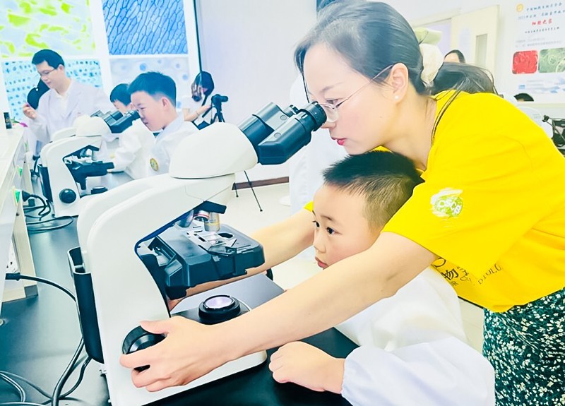 动植物细胞长什么样?什么是干细胞?储存干细胞,有什么用处?DNA是什么样?可以肉眼看见它们吗?科幻电影中的“死而复生”能走进现实世界吗?孩子们借助显微镜观察形态各异的标本,认真观察仔细记录,俨然一副“小小实验员”的架势。