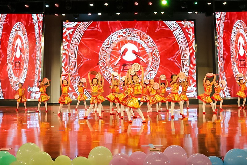 维族舞《古丽古丽》、情景舞《咯吱咯吱我》、武术《传承》、《中华武术向未来》、亲子舞《你是太阳我是星星》等异彩纷呈的节目轮番上演,孩子们尽情歌唱,欢乐舞蹈,呈现出一片喜庆祥和的景象。