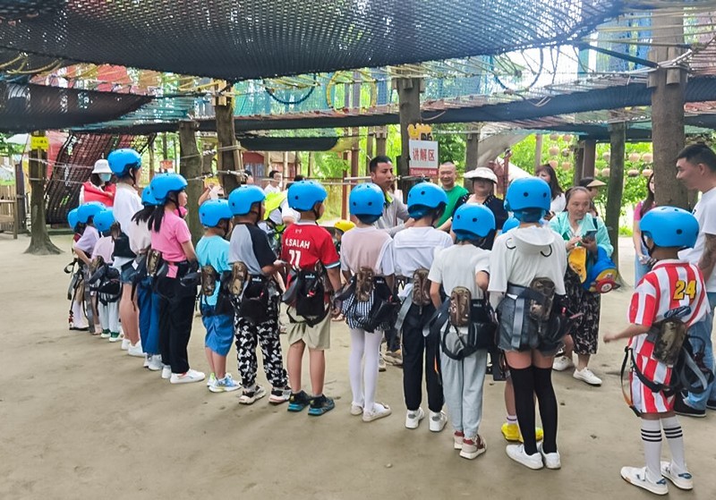到达目的后,教练首先对每一个小孩进行了详细的溜索使用方法讲解,并帮助他们进行了实践测试。由于该技能较为复杂,一些较小的孩子学习起来有些困难,但是在家长们的不断鼓励和指导下,最终都掌握了正确的操作方法。