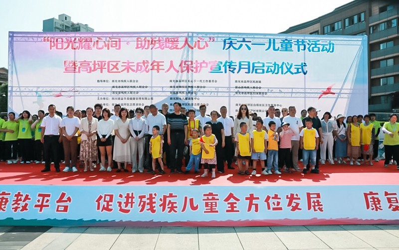 为呼吁社会各界关注残疾儿童及家庭、普及残疾儿童康复知识。5月30日,由四川德益华美、南充阳光儿童康复中心主办、高坪区志愿者协会、高坪区科普志愿者协会协办的“阳光耀心间·助残暖人心”庆六·一儿童节活动暨高坪区未成年人保护宣传月启动仪式在安汉广场举行,市残疾人联合会、区关心下一代工作委员会、区民政局、区残疾人联合会、区妇联等相关单位负责人、爱心企业代表、残疾儿童及监护人共600余人参加活动。