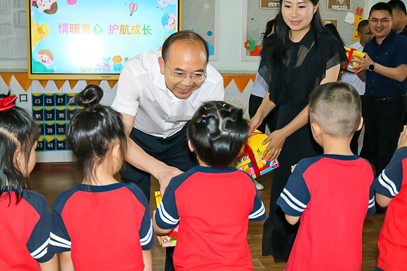 陈松柏一行进入园区就受到了孩子们的热烈欢迎,躬身与孩子们交流,倾听童言稚语。为孩子们送上节日祝福和六一礼物,将党和政府的亲切关怀与温暖祝福送到孩子们身边,并嘱咐孩子们要胸怀梦想,珍惜当前来之不易的学习和成长环境,做有崇高追求、有理想信念的接班人。孩子们收到节日礼物,快乐与喜悦之情溢于言表。孩子们也将美丽的捧花送给尊敬的领导伯伯、叔叔们表达心中的感谢与热情,快乐在笑声中流淌,关爱在慰问中传递。