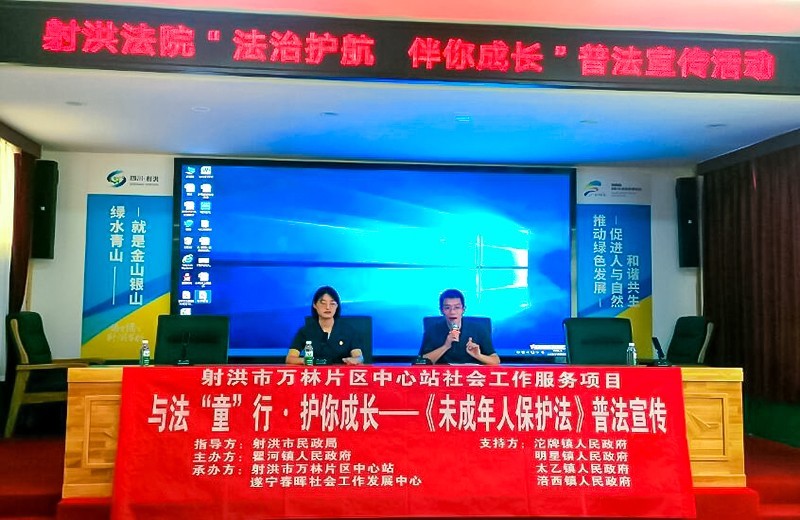 5月29日,四川省射洪市民政局指导下,射洪市万林片中心社会工作服务站支持下,遂宁春晖社会工作发展中心链接射洪法院资源,在六一来临之前为儿童们开展了与法“童”心·护你成长”—《未成年人保护法》普法宣传活动。