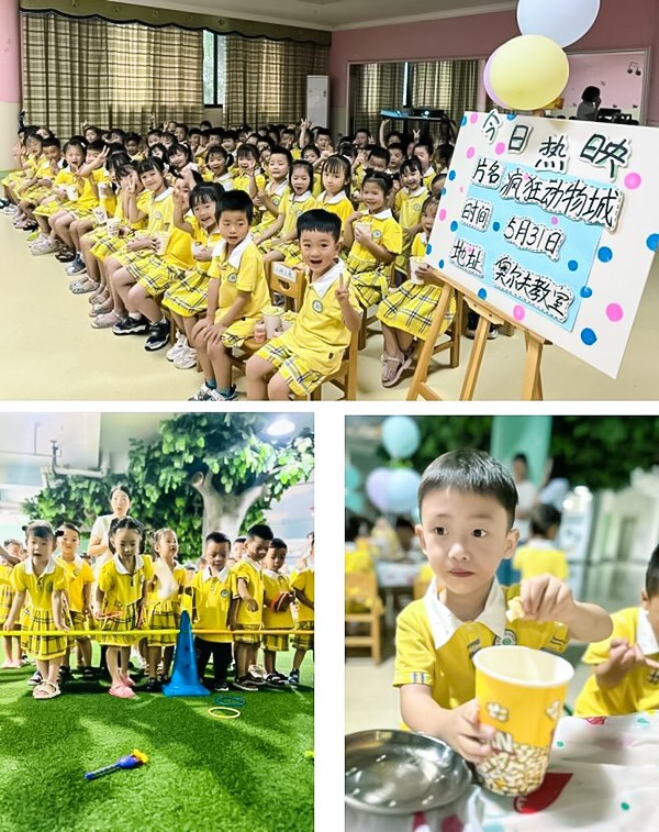 孩子们欢快淋漓,和朋友们一起看电影、玩游戏、分享美食......欢快地徜徉在幼儿园的各个角落,整个活动现场热闹非凡。孩子们的欢声笑语把青苹果园子变成了欢乐的海洋,留存在记忆深处。