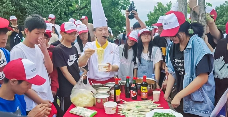 安居职中来校开展研学活动的同学们自制凉面的体验活动。