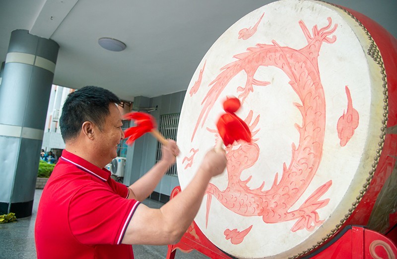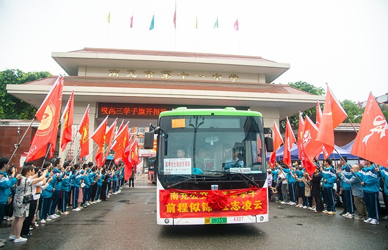 7时58分,战鼓擂响。随着一声“出征”,在学校领导、全体师生满怀祝福的相送中,一辆辆承载着无数人梦想的高考专车缓缓驶出校门,载着斗志昂扬的十一中高三学子们向着胜利出发。