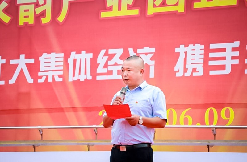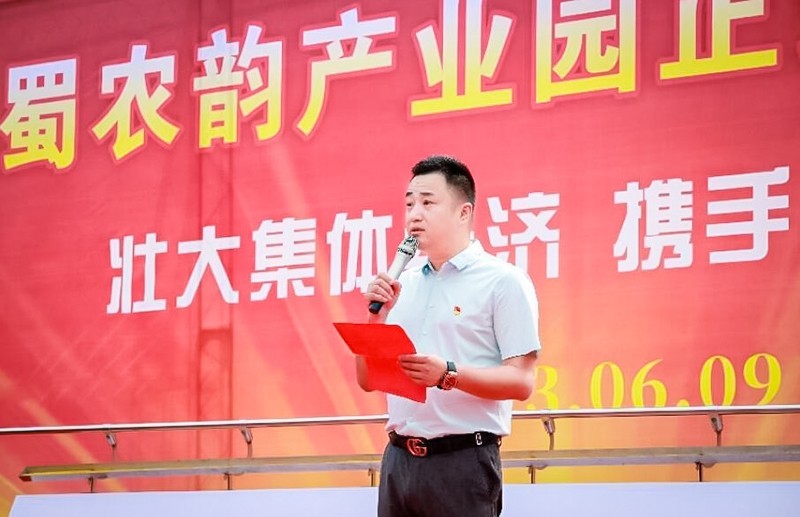 首先,巴蜀农韵总经理李刚致辞发言,他对前来参加奠基仪式的各级政府领导、各位嘉宾表示热烈的欢迎和衷心的感谢。李刚表示巴蜀农韵产业园区项目的发展离不开社会各界的关心和支持,近年来,高塔村与巴蜀农韵一道,积极探索乡村振兴新路子,尝试推行“社会资本投资+集体公司运营+社区结对共建+农户参与”的现代农业园区运行新机制,尝试开发农业多种功能,挖掘农业多元价值,酝酿规划了巴蜀农韵产业园这一综合产业园区。