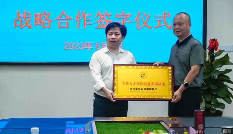 6月7日下午,南充电影工业职业学院与南充市电影微电影协会战略合作协议签字仪式在学校二楼会议室举行。四川东方教育集团常务副董事长、学校理事会秘书长邹鹏,学校党组织书记陈永龙,副校长何卫东、欧阳明及部分处室、系部负责人参加签字仪式。