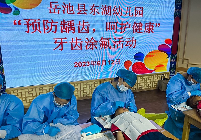 口腔健康是全身健康的基础,龋齿是危害幼儿健康的常见病。为了提高幼儿的口腔健康水平,降低幼儿乳牙龋齿患病率,切实做好幼儿牙齿卫生保健工作,6月12日,四川省广安市岳池县口腔医院的医护人员走进东湖幼儿园开展儿童牙病防治活动,帮助幼儿牙齿涂氟防龋。