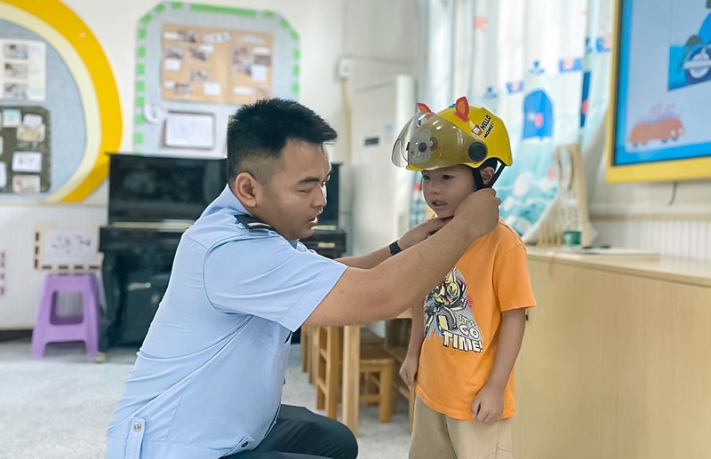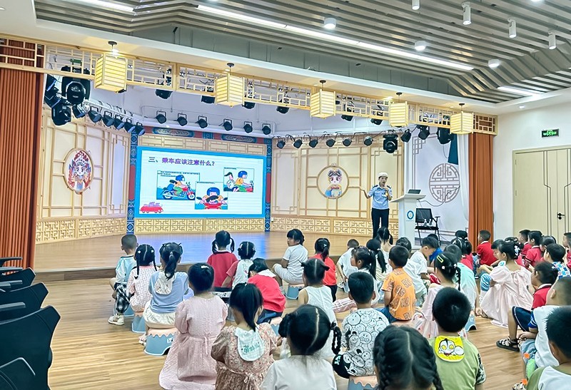 为增强幼儿安全意识,提高幼儿自我保护的能力,营造文明、平安、和谐的校园育人环境。6月13日,四川省广安市岳池县东湖幼儿园法治班主任杨萃琼、卢郭、陈浩三位警官,开展了“法治班主任”进校园安全教育主题活动。三位警官走进幼儿园、走进教室,分别对小、中、大班各班幼儿上了一堂别开生面的交通安全课。