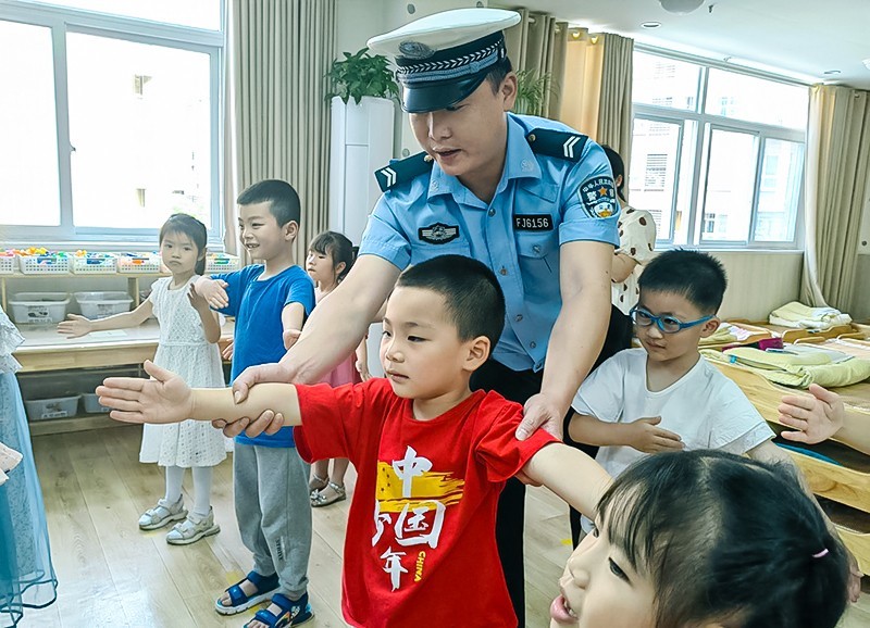 两位警官聚焦交通安全主题,从步行安全、过马路的安全、乘车安全等方面进行了讲解,通过图片、视频和生动的语言、游戏等不同形式,结合身边的实际案例和孩子们一起探讨怎样做到“文明交通,平安出行”。