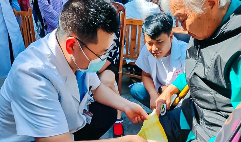 义诊现场,专家仔细为村民测量血糖、血压,把脉问诊,针对村民健康问题现场答疑解惑,耐心提供诊疗咨询服务,结合老年人群常见病、慢性病讲解疾病预防、合理饮食、运动锻炼等健康知识,并发放中医健康科普资料,向村民宣讲中医养生常识,引导村民养成良好的生活习惯。