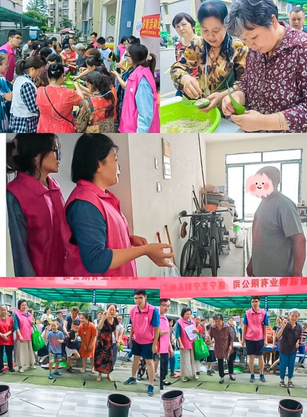 活动现场,居民早早等候在旁。活动伊始,社工精心准备了和端午节有关的题目,居民们争先恐后举手抢答端午民俗知识,回答正确者可获得艾草香包一个;投壶是我国古代的一种传统礼仪,投壶可以锻炼人的专注力、控制力和手眼协调等能力,居民们两两一组进行比拼,欢乐不已;随后,社工把提前泡好的粽叶、糯米等材料整齐地摆放好大家说说笑笑、动作麻利,捋粽叶、做漏斗、填糯米、封口、扎捆,一张张翠绿的粽叶,一盆盆雪白的糯米,瞬间变成了一个个棱角分明的粽子。最后,我们带着粽子去走访了楠木小区的困难居民,向他们送上节日祝福和关爱,让他们真切感受到社会大家庭的温暖,充分发挥慈善扶贫济弱的功能。