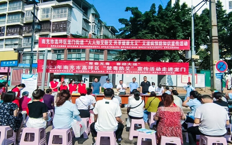 今年6月26日是第36个国际禁毒日,为扎实推进全区艾滋病、毒品防控工作,认真宣传贯彻党和国家禁毒防艾相关法律政策,让广大社区居民深刻认识到毒品与艾滋病带来的严重社会危害。6月26日上午,四川省南充市高坪区疾控中心携手龙门街道办、龙门派出所、龙门社区卫生服务中心、区志愿者协会等单位联合开展了高坪区“禁毒防艾”宣传进龙门活动。龙门街道党工委书记柯真金、区疾控中心性艾科科长侯杰参加了活动。
