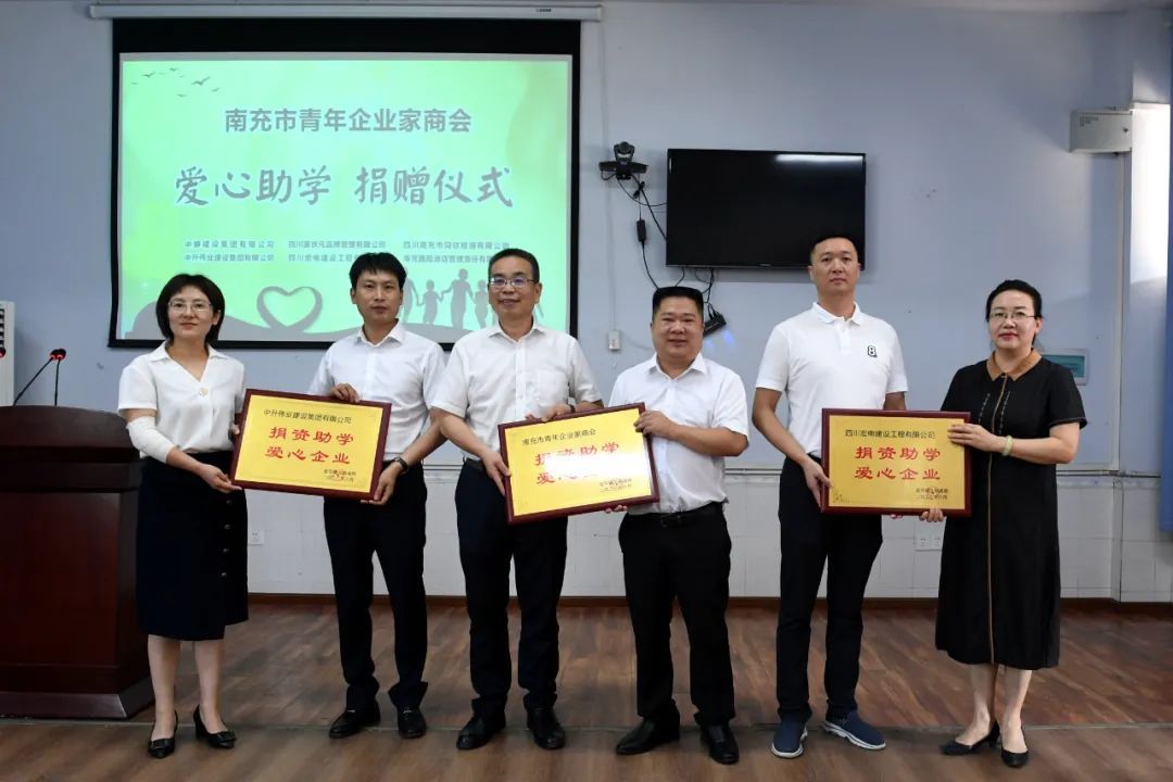 6月25日上午,南充市青年企业家商会捐资助学活动在嘉陵区安平小学举行。市政协副主席王晓贤,市工商联主席、总商会会长杨波,区政协主席白青云,市青年企业家商会会长彭帅出席活动。