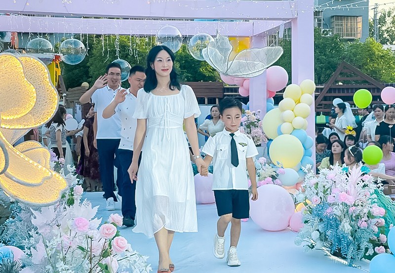 典礼开始,小朋友们身着迪士尼服装,怀着激动的心情,带着甜美的微笑,与家长携手穿越成长之门,一起到签到墙贴上了自画像以及祝福语。活动开始,孩子与家长在童趣欢快的音乐声中开始了“梦幻走秀”,边走边向旁边的观众挥手,展示着他们自信与亲子间爱意满满的互动!