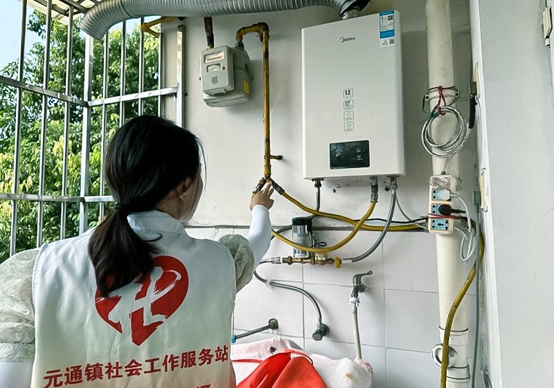 元通镇社工站社工入户居民家中向居民发放“燃气使用安全重要提示”宣传单,让居民系统的了解和掌握燃气的特性、安全使用燃器具要求、发生漏气时的正确处理方法等知识。重点入户空巢、留守老人家中,查看检查燃气管道是否正常,提醒老人及时更换老化或龟裂的管道,确保用气安全。