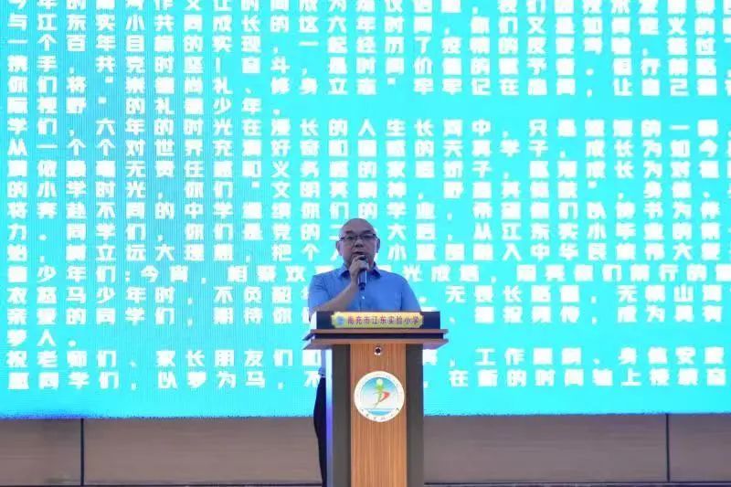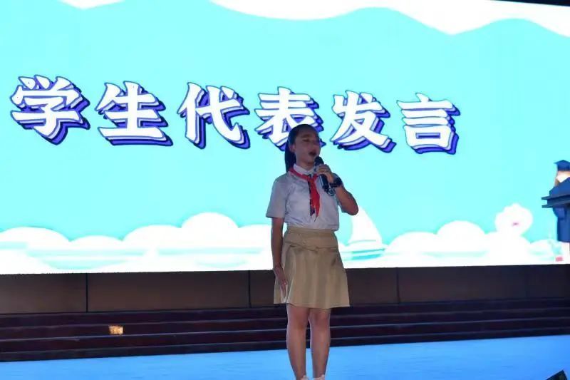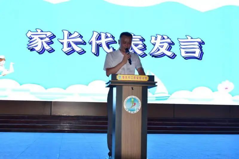 六年级一班胡静默同学的爸爸作为家长代表,他肯定了孩子们六年来的成长和进步,对学校和老师的辛勤付出及为孩子们带来的六年幸福、快乐的童年时光表示感谢,愿孩子们走向下一个征程时,插上腾飞的翅膀,扬起理想的风帆!