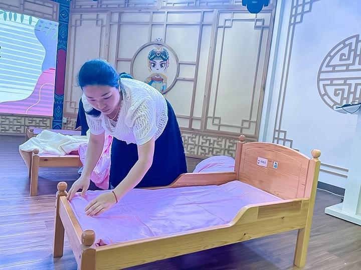 为提升保育员专业技能和综合素质,提高幼儿园保教水平,真正做到保教结合,6月28日,四川省广安市岳池县东湖幼儿园举行了保育员技能大赛。本次比赛内容分为理论知识抢答、意外伤害应急处理实操、叠被子、讲故事四个项目。