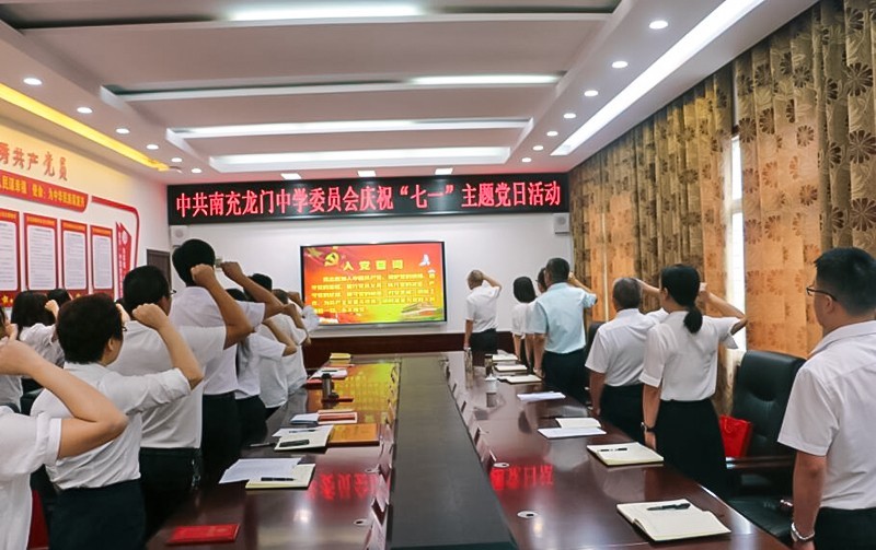7月1日,四川省南充龙门中学在综合楼二楼会议室举行庆祝“七一”主题党日活动,党委班子成员,各支部书记,年度优秀共产党员、优秀党务工作者,老党员代表,困难党员参加了活动。