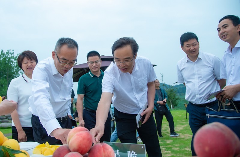6月1日,我们走进位于四川省南充市高坪区江陵镇的凤仪湾中法农业科技园,只见远方丘陵青翠绵延、大小湖泊星罗棋布,美不胜收。万亩桃林万亩红,已经进入成熟采摘期,果农正在加紧采摘供应市场。由四川嘉陵江凤仪湾农业开发有限公司主办的国家桃产业技术体系示范基地授牌仪式暨中法农业科技园新桃品鉴会在此举行。省农业农村厅、省农科院、市文广旅局、市科技局以及高坪相关部门、合作方参加活动。