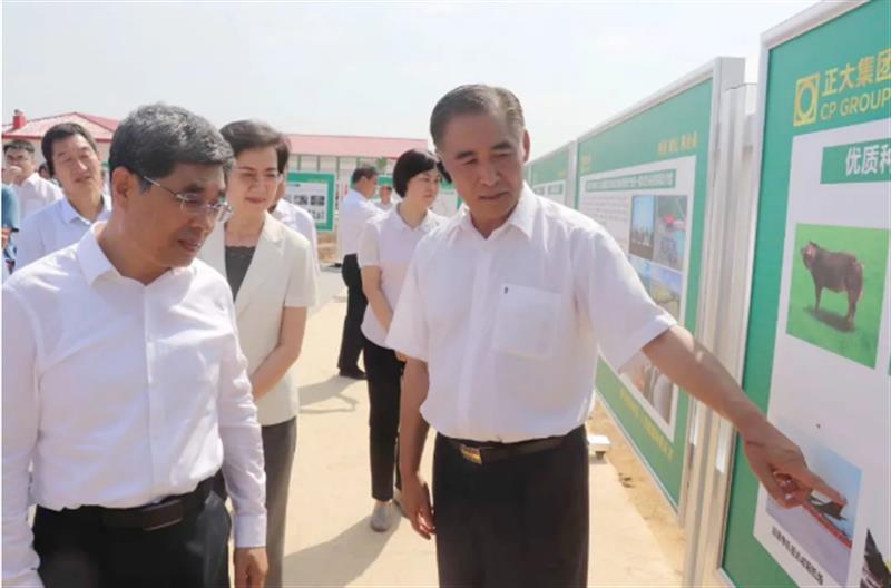 陕西省农牧厅、咸阳市委、中国银行、正大集团相关领导一起推动投产仪式杆,并一起参观了永寿项目展板及正大猪舍。