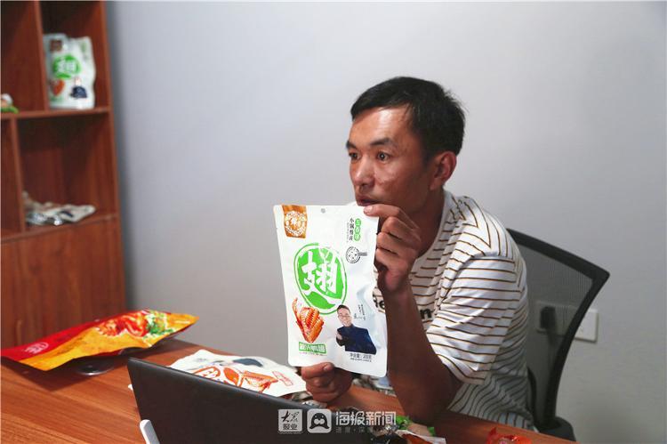 王杲铺镇杲城果蔬种植农民专业合作社联合社二楼直播间里,聚光灯下摆满了卤蛋、扒鸡、鸭翅等当地特色产品,一位“主播”通过直播平台正向网友卖力推荐,现场气氛热烈。