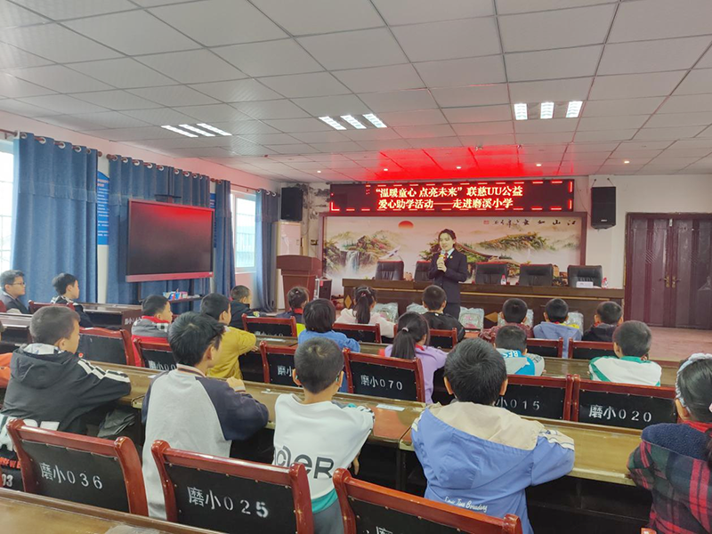 为帮助贫困学生减轻家庭经济负担,帮助家庭贫困、品学兼优的学生继续完成学业,安心学习,10月28日上午,遂宁艺宁妇女儿童社会工作服务中心发挥专业优势,链接到北京联慈公益基金会、UU公益的爱心助学金,遂宁市安居区人民检察院的爱心物资(书包、笔记本、安全宣传手册等)在磨溪小学开展了 “温暖童心 点亮未来”联慈UU公益爱心助学活动。来自磨溪小学、磨溪初中的26名受助学生参加了本次活动。