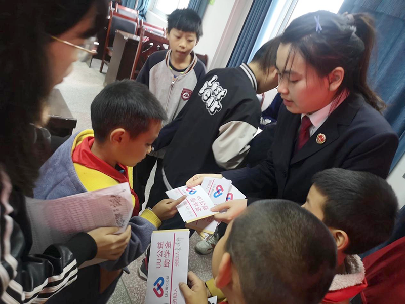 最后,遂宁艺宁妇女儿童社会工作服务中心社工、安居区人民检察院未检工作室工作人员和磨溪小学的彭校长、唐主任为孩子们发放了助学金以及由安居区人民检察院提供的书包等学习用品,孩子们收到资助金和礼物都非常开心,纷纷致谢,幷表达了自己要好好学习的决心。