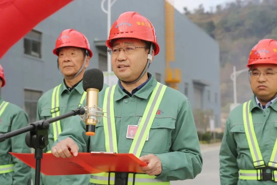 随后,九江公司董事长任荣奎致辞。任总首先对项目成功开车表示热烈祝贺,并向在项目中付出努力的全体参建人员表示衷心感谢。1#高塔复合肥项目自2020年8月10日破土动工,到今天投料开车历时15个月。面对新冠疫情、多雨天气、高温酷暑以及隧道施工等重重挑战,全体参建人员秉承“精雕细刻 科学严谨”的建设理念,发扬艰苦奋斗、攻坚克难的优良传统,加班加点,高标准、高质量完成了1#高塔复合肥项目建设任务。向实现九江公司“十四五”期间复合肥产能突破百万吨的目标迈出了坚实的一步,为未来复合肥的发展树立了信心。