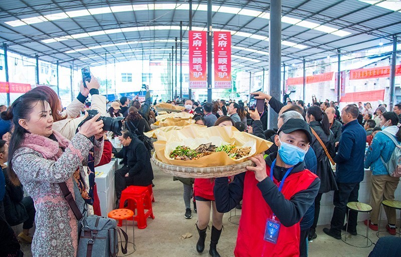 活动中,主办方还为柏富荣、王亚辉等授予了“天府三顾毛驴品牌技术顾问团”称号,整个活动内容丰富多彩,千人坝坝宴花样百出,这不仅成为一次乡村狂欢盛会,也带动了当地农产品热销。